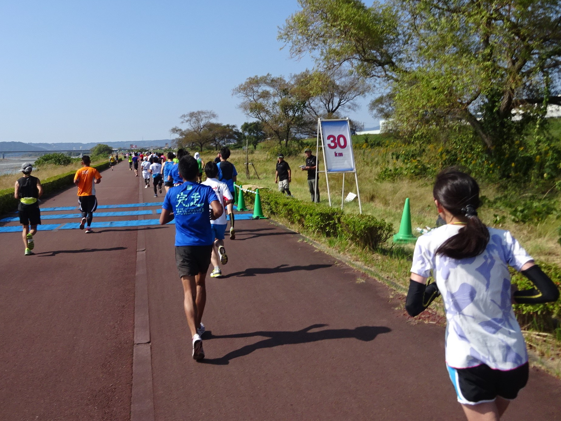25kmをすぎて、かなり足腰にガタがきたが、何とか給水と休憩を取りながら30kmをめざした。