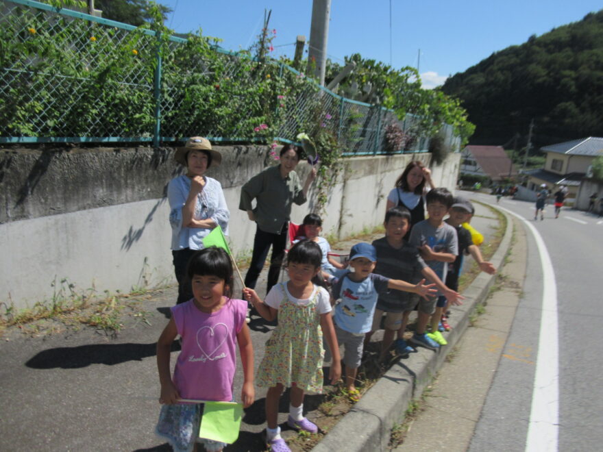 饅頭を食べ終わって、急な下り坂を加速した。子供たちの応援に元気づけられた。(11km)61分39秒[5:35]